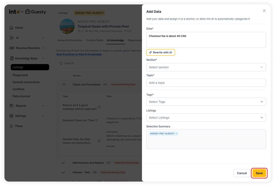 The Knowledge Base is your AI’s source of truth — it helps ensure that your guest-facing AI has access to accurate, up-to-date operational information. The more complete your Knowledge Base is, the more confidently and accurately your Autopilot will respond to guest questions.