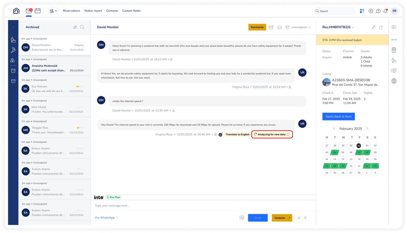 - When an agent reply is sent, look for the short status indicator near the message: “Analyzing for useful data…” — this shows the detection engine is running.