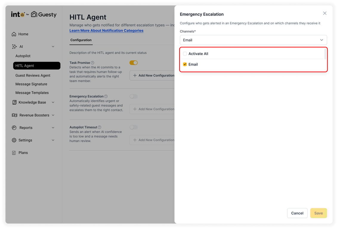 The Human-in-the-Loop Feature (HITL) ensures that every guest interaction is handled with care. It monitors conversations between Guests and your AI, allowing human intervention when necessary. This feature keeps guest communication efficient, accurate, and on-brand — while maintaining full human oversight.